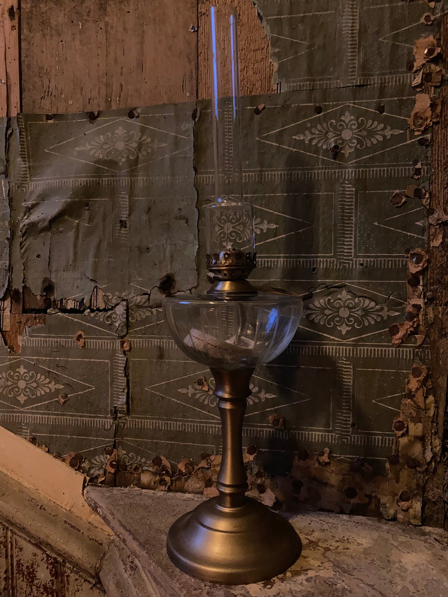 Fotogenlampa På Fot Antik Mässing