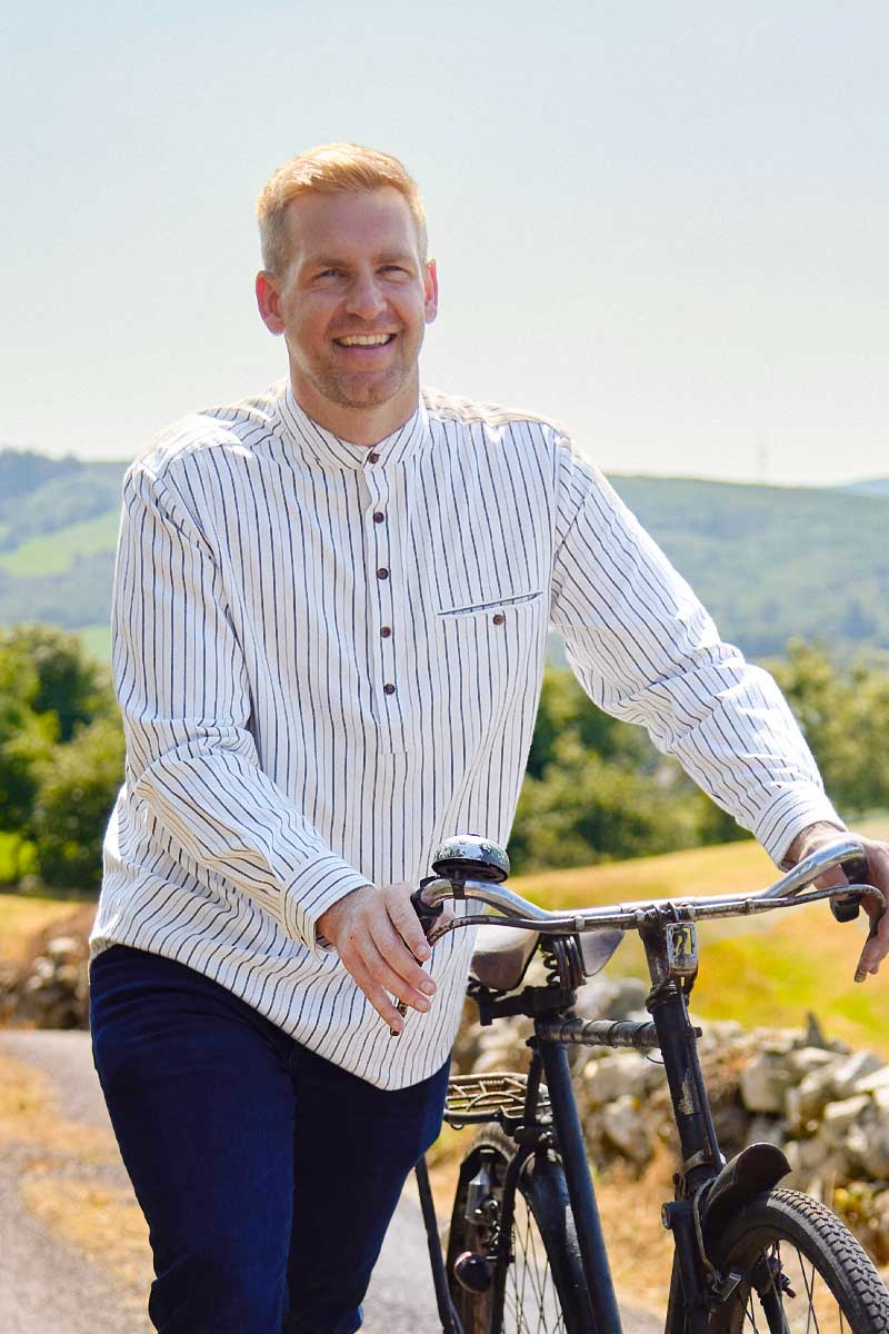 Gammaldags Farfarsskjorta Benvit med svarta ränder