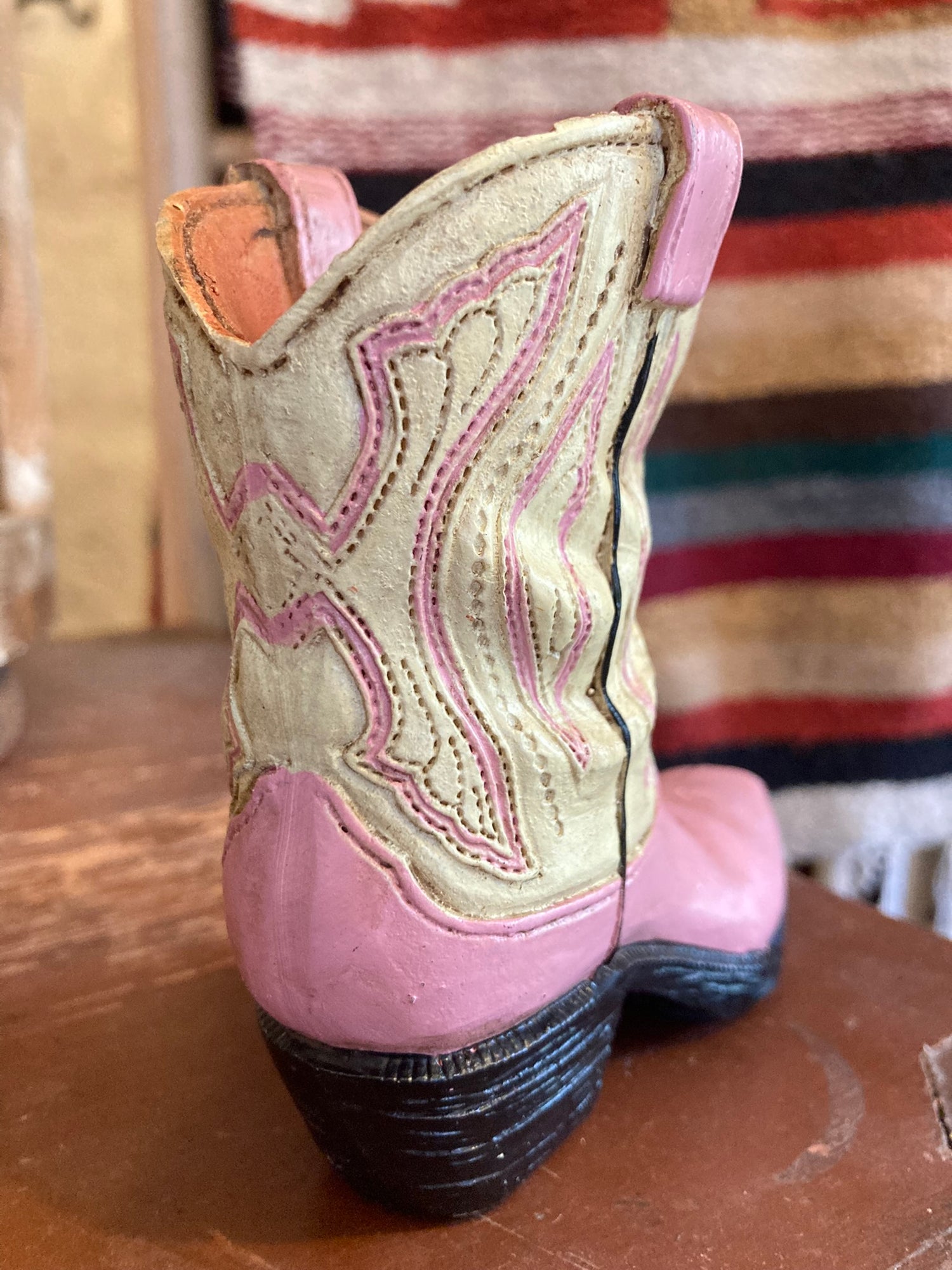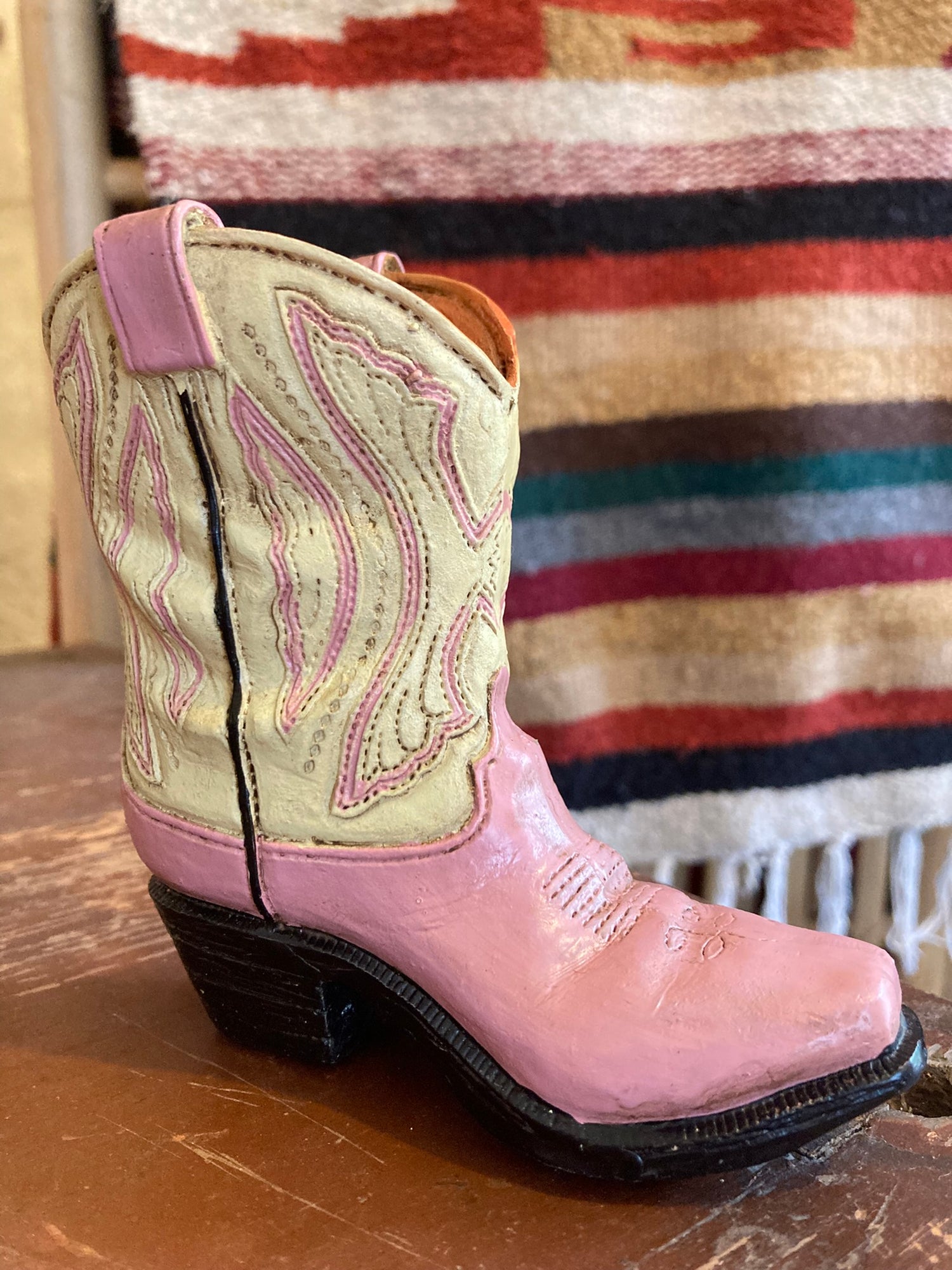 Prydnadsboots i resin. Höjd 11,5 cm.