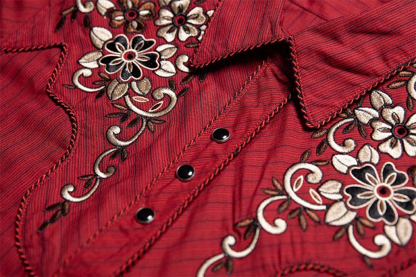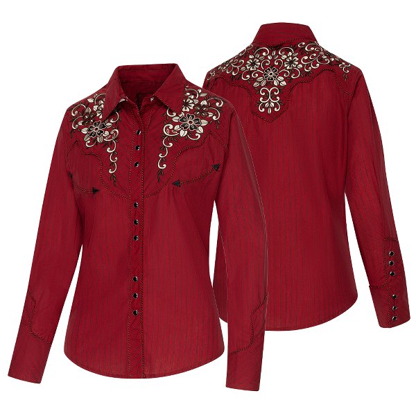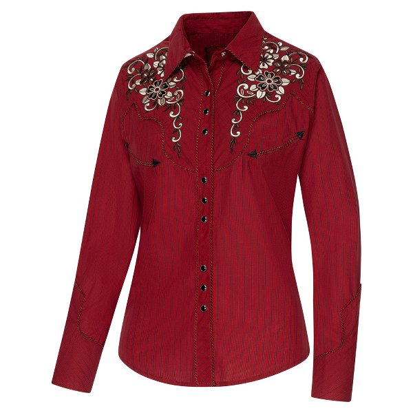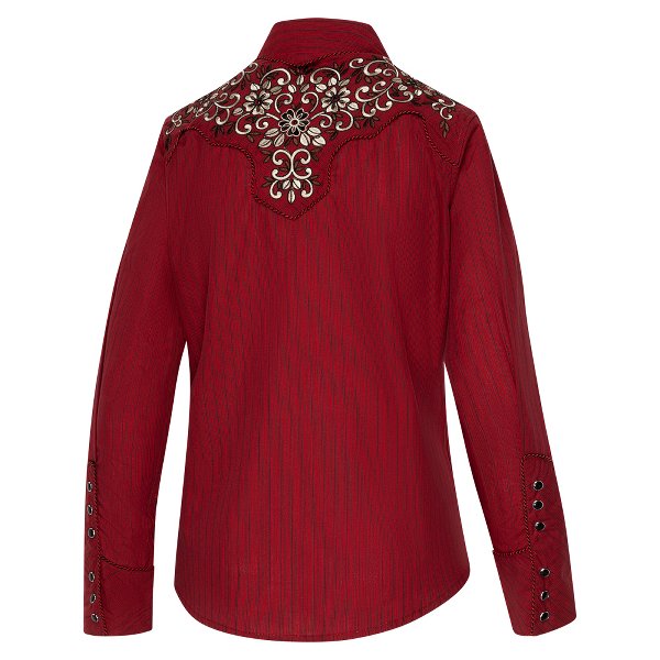 Westernblus vinröd randig med broderier